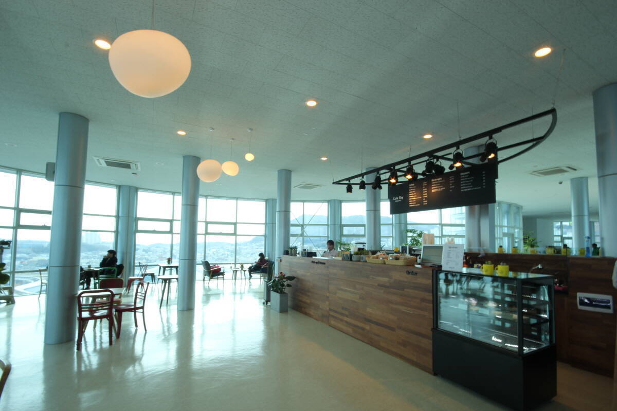 높이 67m의 아찔하고 가슴이 뻥 뚫리는 전망대에서 바라보는 남해안권과 박람회장의 드넓은 조망은 물론, 기네스에 등재된 뱃고동 음색의 파이프오르간 연주까지 감상하며 여유롭게 음료와 맛있는 쿠키를 즐길수 있습니다.